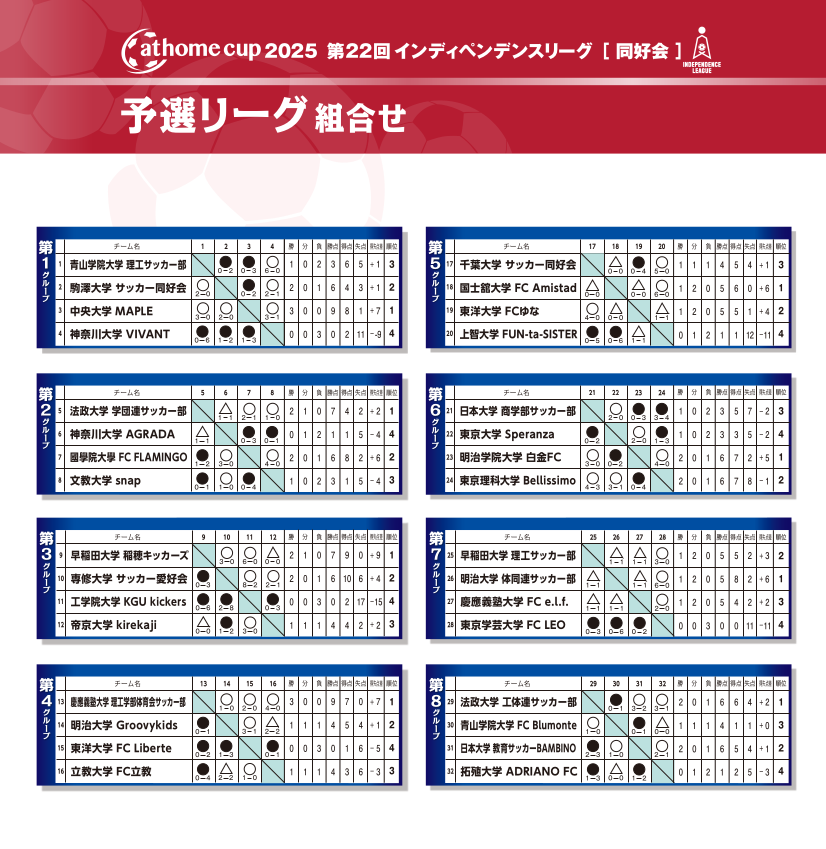 | 名称 | アットホームカップ2025 第22回インディペンデンスリーグ[同好会] |
